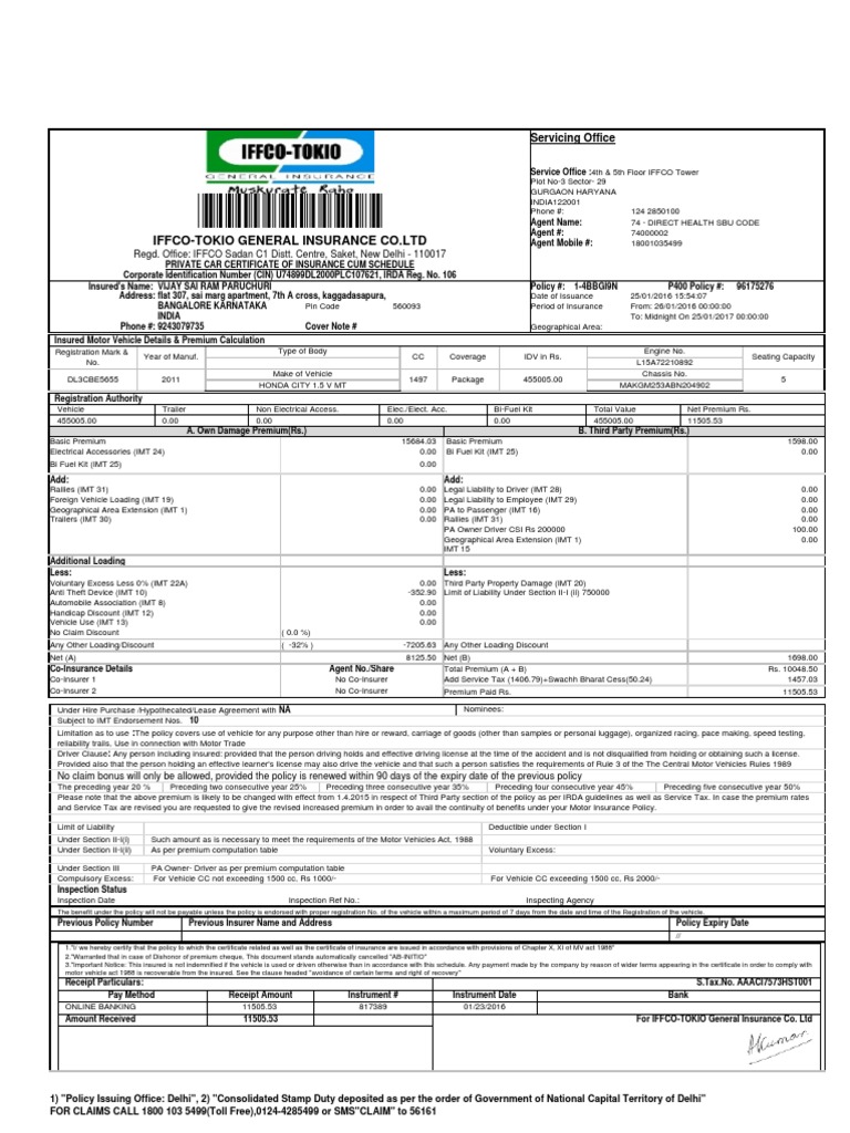 Insurance Format For Two Wheeler Pdf Download