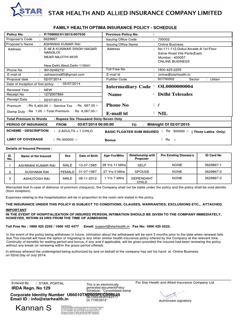 Insurance Premium Receipt Pdf